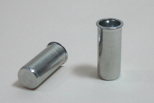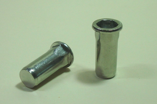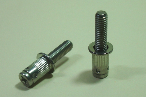 : 不須使用氣動/電動工具,簡單手工具即可組裝,應用於薄板的締結,變形處被撐開呈十字形,其功能類似市面上的十字開叉拉帽。